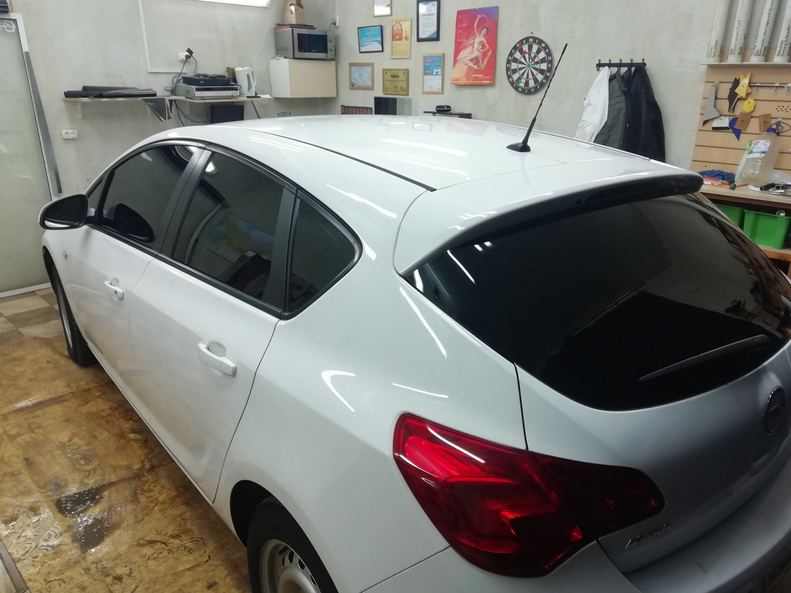 Opel ASTRA ХЭТЧБЕК: процесс тонировки лобового стекла ГОСТ Хамелеон